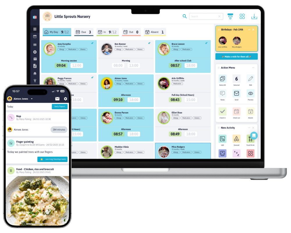 Streamline operations, enhance parent engagement, and simplify staff tasks with real-time updates across devices—secure, reliable, and effortless childcare management.