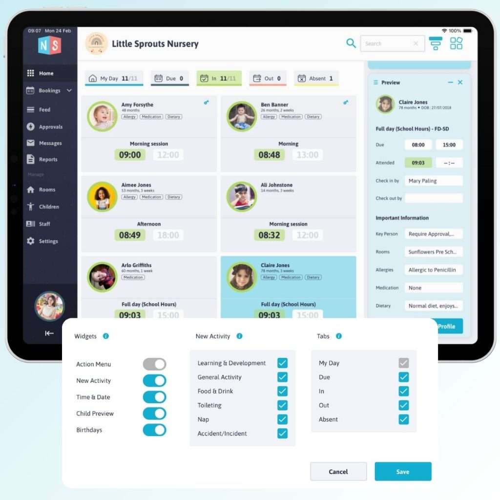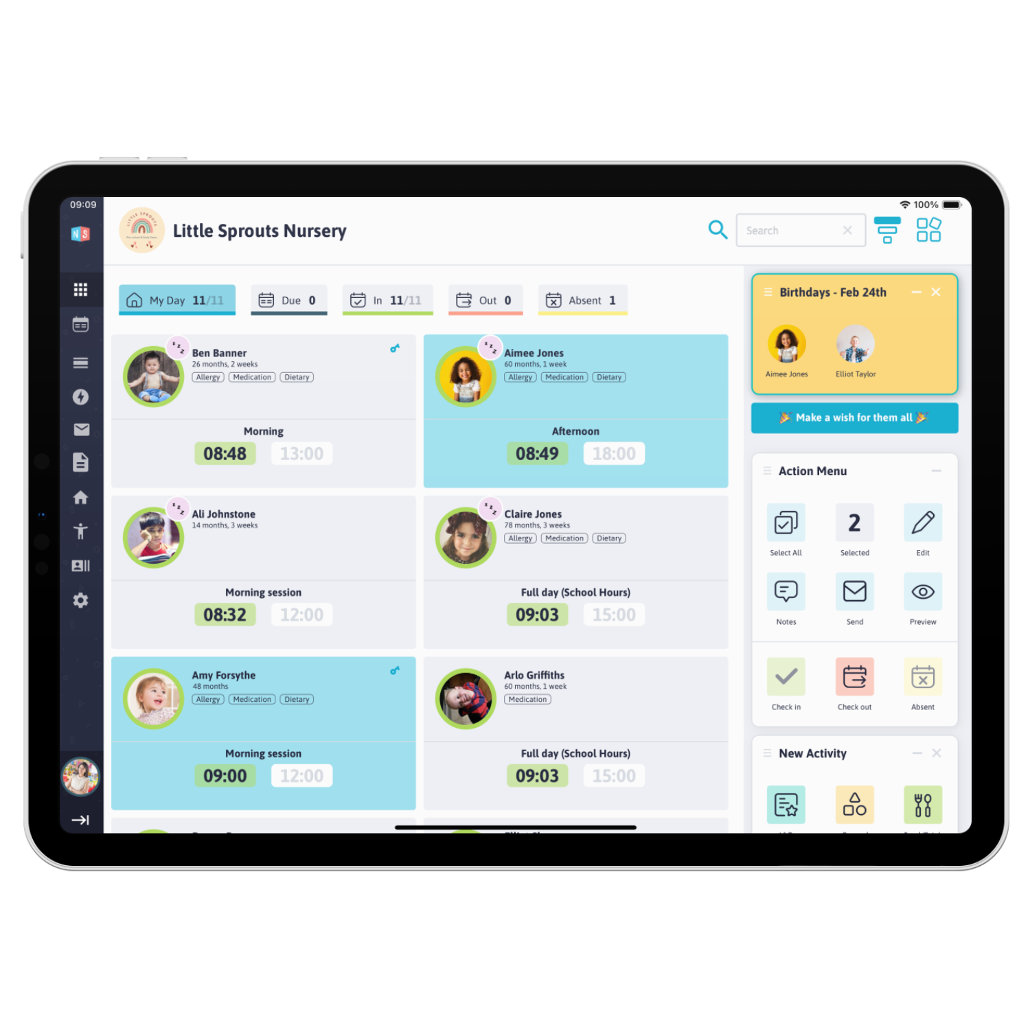 Manage your nursery with ease using streamlined attendance tracking, permissions & approvals, invoicing, financial planning, and occupancy insights.