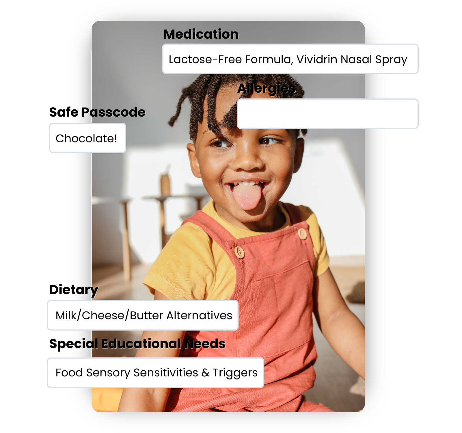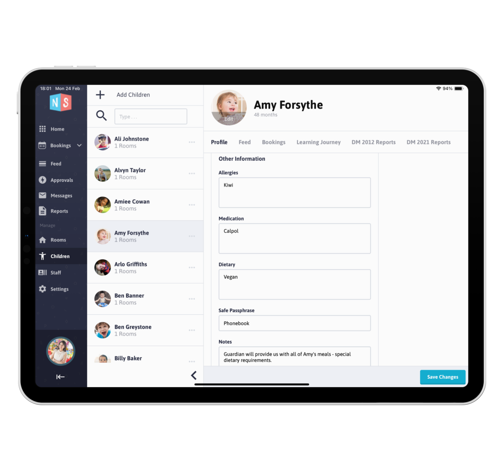 From child details to allergies, medical info to key people — it’s all linked and always up to date in one central profile.